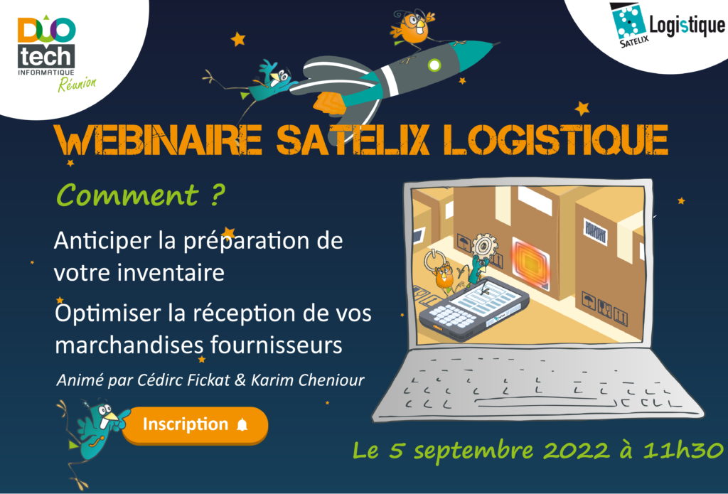 Nous vous convions à venir découvrir la solution Satelix Logistique qui répondra à vos attentes et problématiques d’entrepôt lors d’un webinaire que nous organisons le 5 septembre.