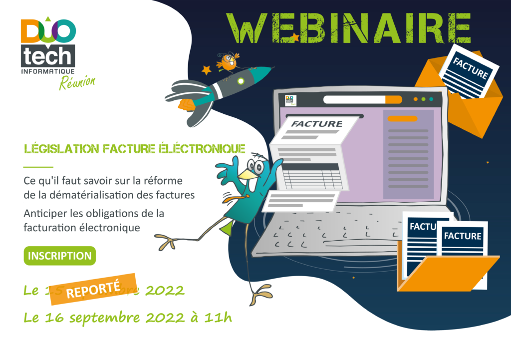 Force étant de constater que le recours à la facture électronique devient incontournable, et afin de vous y préparer, nous vous proposons de revenir sur les modalités de mise en œuvre des nouvelles règlementations autour d’un webinaire clair et schématique qui aura lieu le 16 septembre à 11h.
